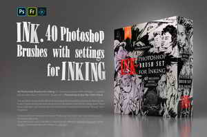 INK• 40 Photoshop Brushes with all settings for inking (37 brushes imitating real pens, brushes, sprays, and splashes + 3 splashes/blot brushes from the “SPLASHES” brush set) for realistic digital Inking in Photoshop.
