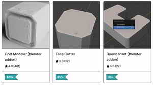 Grid Modeler, the star of the collection, revolutionizes polygonal modeling by allowing you to draw directly on surfaces in a dynamic grid system. It makes panel creation, hard-surface detailing, and mechanical design faster than ever. Face Cutter provides smart cutting tools that enable intuitive shape subtraction and addition, while Round Inset adds perfect rounded extrusions and bevels without destroying topology. Together, these addons form an integrated modeling ecosystem built to maximize both speed and accuracy.
