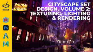 Continuing on from Cityscape Set Design, Volume 1: Modeling by Visual Development Artist Tony Ianiro, this second volume focuses on texturing, lighting, and rendering, resulting in a professional-quality Photoshop composite using your rendered outputs. This workshop draws on over twenty years of Tony’s experience and bridges traditional 2D illustration techniques with modern 3D workflows.