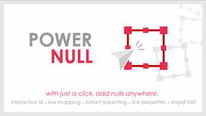 With just a click, add Nulls anywhere. interactive UI • live snapping • instant parenting • link properties • rig faster • work smarter Power Null is significantly faster, easier, more accurate, more feature-rich, more lightweight, and takes up little (or no) room in your workspace.